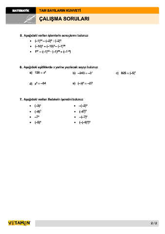 MATEMATİK TAM SAYILARIN KUVVETİ